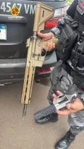 Dentro do carro foram encontrados um fuzil calibre 5,56 x 45mm, equipado com seletor de rajada,  um revólver calibre 357 e munições. As armas estavam dentro de caixas de papelão. O suspeito disse fazia o transporte das armas de fogo de Taguatinga para a Cidade Estrutural, mas negou-se a dizer quem as enviou e o destinatário.