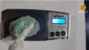 Durante a abordagem, os policiais verificaram que a motocicleta conduzida pelo autor apresentava o número do chassi raspado. Em busca pessoal, foi localizada uma porção de maconha pesando 23 gramas no bolso do abordado. Técnicas de identificação veicular confirmaram que o veículo estava com os sinais identificadores adulterados. O autor relatou ter adquirido a motocicleta por R$ 4.500,00 na cidade de Fazendinha, Goiás.